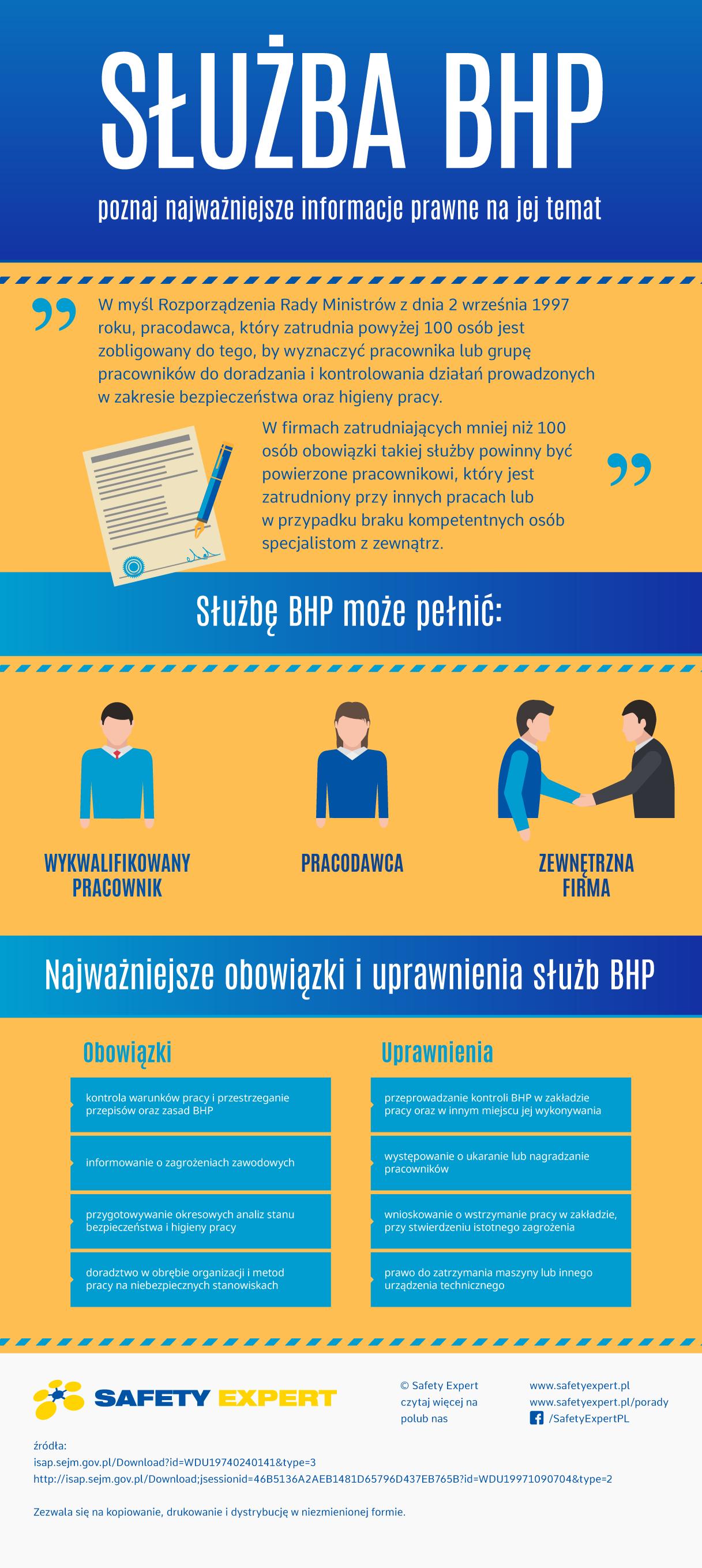 W myśl Rozporządzenia Rady Ministrów z dnia 2 września 1997 roku, pracodawca, który zatrudnia powyżej 100 osób jest zobligowany do tego, by wyznaczyć pracownika lub grupę pracowników do doradzania i kontrolowania działań prowadzonych w zakresie bezpieczeństwa oraz higieny pracy. W firmach zatrudniających mniej niż 100 osób obowiązki takiej służby powinny być powierzone pracownikowi, który jest zatrudniony przy innych pracach lub w przypadku braku kompetentnych osób specjalistom z zewnątrz. Zgodnie z § 1 ust. 5 tego rozporządzenia służba BHP podlega pracodawcy, a gdy jest jednostką organizacyjną osobie, która nią zarządza bądź osobie wchodzącej w skład organu zarządzającego, która jest upoważniona do takiego nadzoru. Ilość pracowników, wykonujących swoje obowiązki w ramach tego organu zależy od decyzji pracodawcy, przy czym powinna uwzględniać różne czynniki, w tym warunki pracy i związane z nimi zagrożenia. W przypadku, gdy inspektor pracy stwierdzi, że na danych stanowiskach istnieją zagrożenia zawodowe może nakazać zwiększenie grona pracowników służby BHP (zgodnie z art. 237 § 4 Kodeksu pracy).